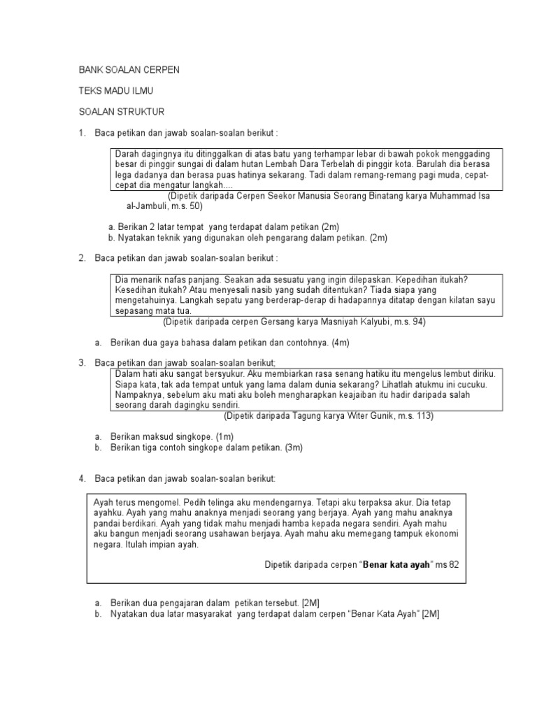 Soalan Cerpen Seekor Manusia Seorang Binatang Dan Warna Hati Seorang Datin Pdf